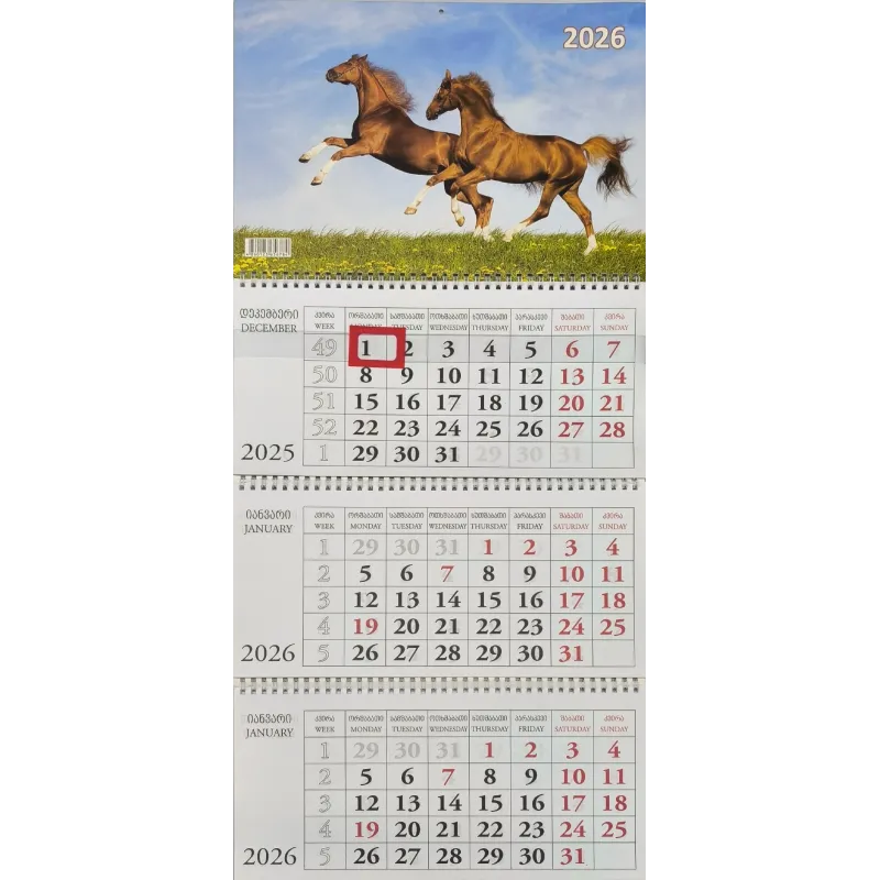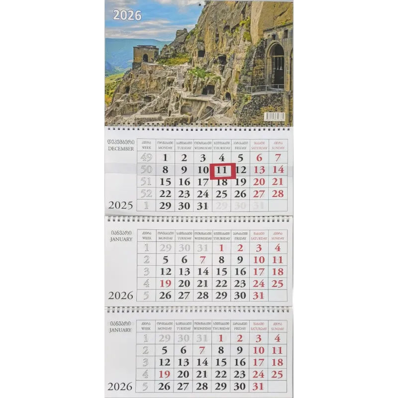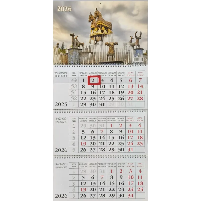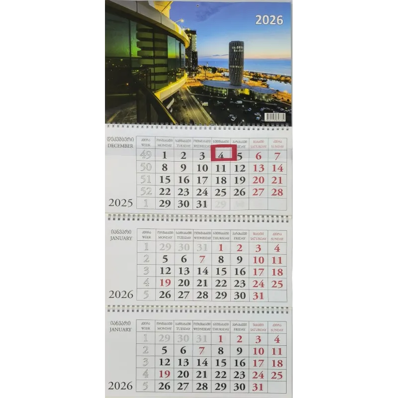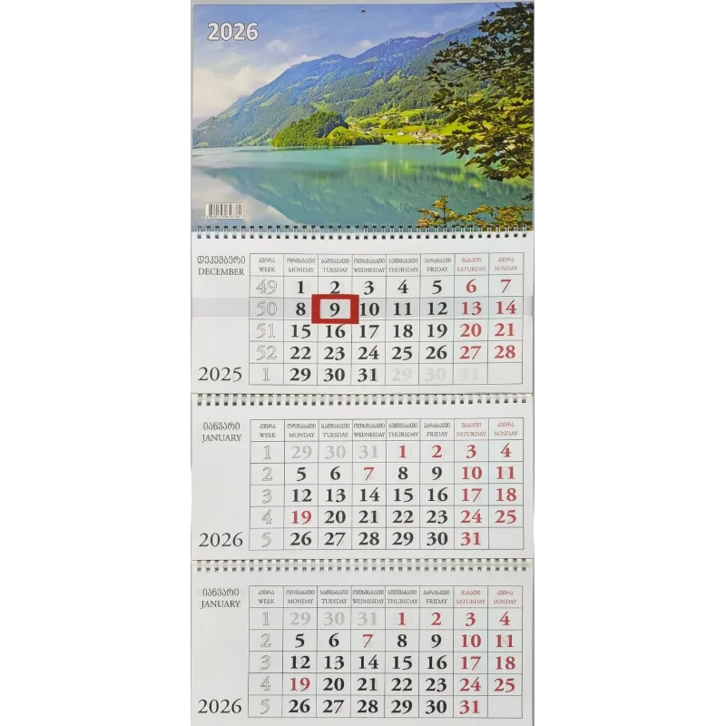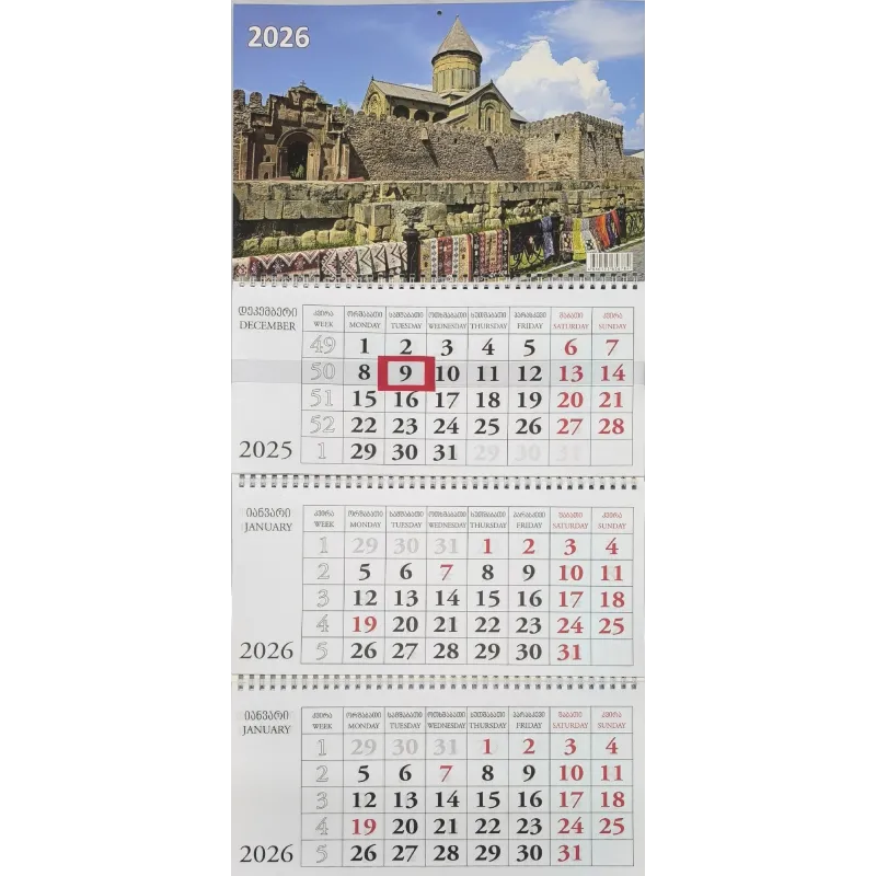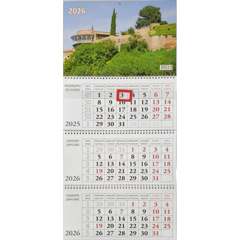 კალენდარი კვარტალური კედლის 2026 წ.